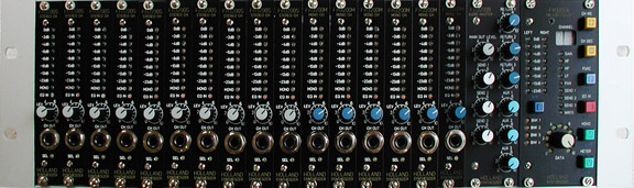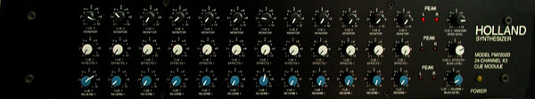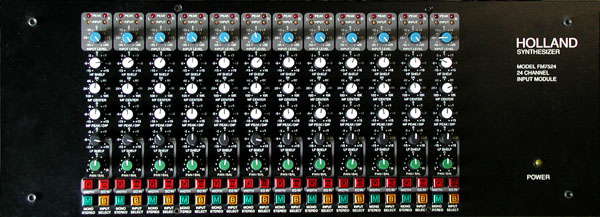 The Holland Synthesizer Model FM7000 is a range of custom built audio processing modules designed for high end audio. The modules are 19" rack standard and can be used stand-alone or combined to fit into a custom console mainframe. The FM3200 is a 32 channel digitally controlled analog console in a 3U package.